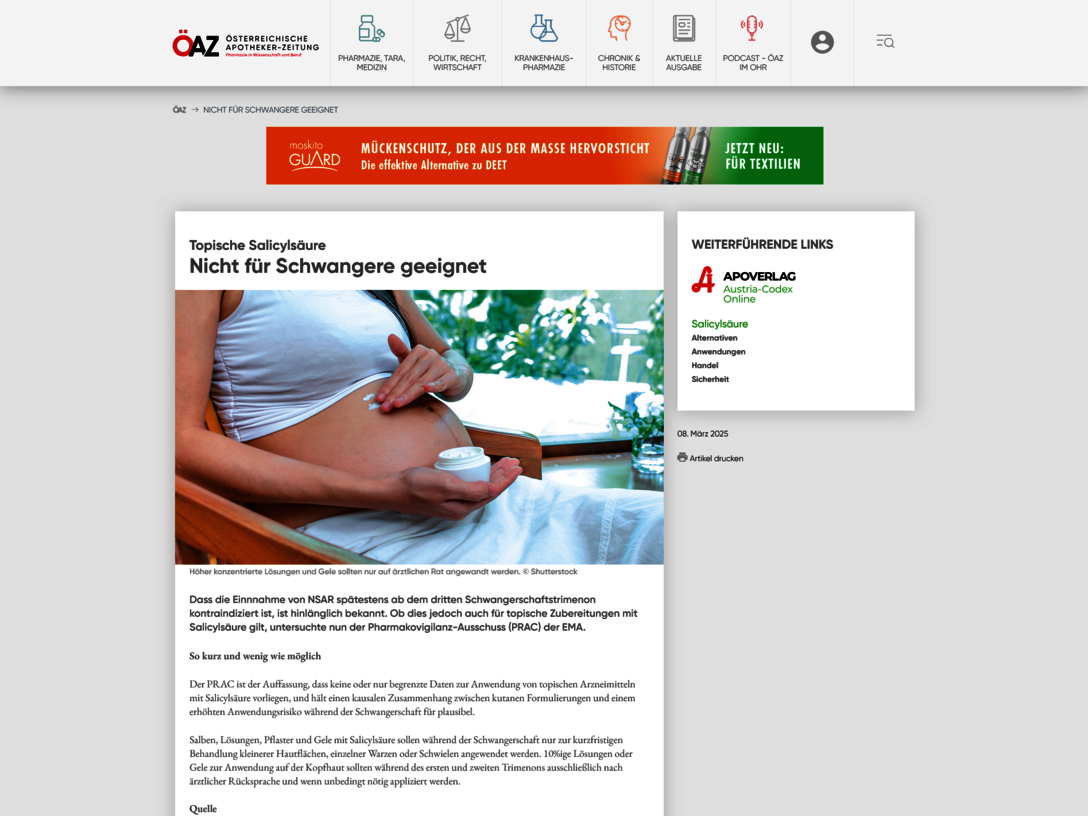 In Fachartikeln auf oeaz.at werden relevante Arzneistoffe automatisch angezeigt. Ein Klick führt direkt zur passenden Fachinformation im Austria-Codex Online mit Informationen zur Anwendung, Sicherheit und vielem mehr. Die Verlinkung unterstützt eine schnelle Vertiefung bei konkretem Informationsbedarf.